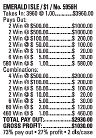 580 Wins @ $ 1.00 ……………. $ 580.00