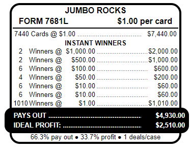JUMBO ROCKS - $1000 Top Win – 7440 Count