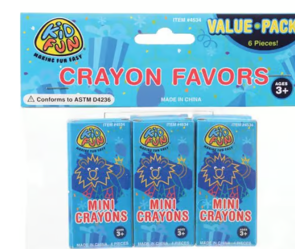 - Package 6 boxes of crayons with 4 pieces assorted colors per box